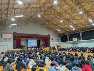 10月30日(木)、本日は生徒総会が行われました。3年生の生徒会長が今までの活動を振り返り、2年生の生徒会長が今後の方針を説明しました。タブレットを使った説明が普通に行われており感心しました。今年の3年生の生徒会は様々な活動をしてくれました。生徒会インスタグラム、昼の校内放送「あかラジ」、挨拶運動などたくさんあります。そして、アルミ缶回収によって集まったお金もプラスして立派な花火を文化祭で打ち上げることができました。本当に自ら考えて活動してくれたと思います。1・2年生の皆さんには、伝統を継承しながらも時代に合った生徒会として、独自色を出していってほしと思っています。