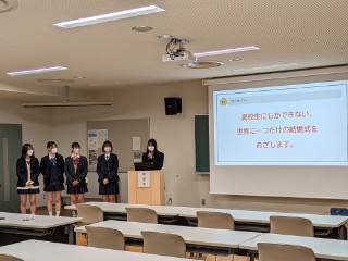 12月2日(火)、総合教育センターで実施された「長野県高等学校商業研究発表会」に本校商業科3年生ブライダル班の生徒が出場し、今までの取組を発表しました。「課題研究」の授業の中だけでなく、放課後も使って計画を進めてきたものを発表しました。プランニングやデザインなどのグループに分かれ作業を進めた際の苦労や工夫した点などについて発表がありました。発表を含めたこれまでの経験は、AIでは答えを得ることができないことを学んだことだと思っています。写真は、発表本番の邪魔にならないように、練習風景を撮影したものです。生徒のみなさん、素晴らしい発表をありがとうございました。