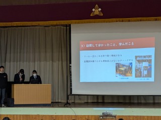 1月22日(木)、2年生の修学旅行探究報告会がおこなわれました。修学旅行の中に探究的な学びを入れての報告です。商業科の生徒は大阪での販売実習「あきんど体験」、普通科の生徒は大阪・神戸の企業様を訪問してのインタビューの様子などを発表しました。「あきんど体験」は保護者の方々が買いに来てくれる文化祭等とは違い、いわばアウェーでの販売になります。その中で駒ヶ根市や長野県の商品を苦労して販売したことはよい経験になったと思います。企業訪問では、事前に駒ヶ根市の企業様にもインタビューさせていただくという経験を積んだうえでの訪問でした。駒ヶ根市との違いや、普遍的な企業理念などについても知ることができ、貴重な体験となりました。企業様にインタビューするだけでなく、生徒の方からも駒ヶ根市の魅力を紹介し、しっかりと駒ヶ根市をPRすることができました。